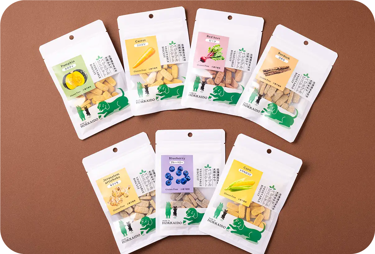 北海道産野菜を中心に、より美味しく、手軽に与えられる商品です。手作りご飯のお供としても活用できる商品もございます。